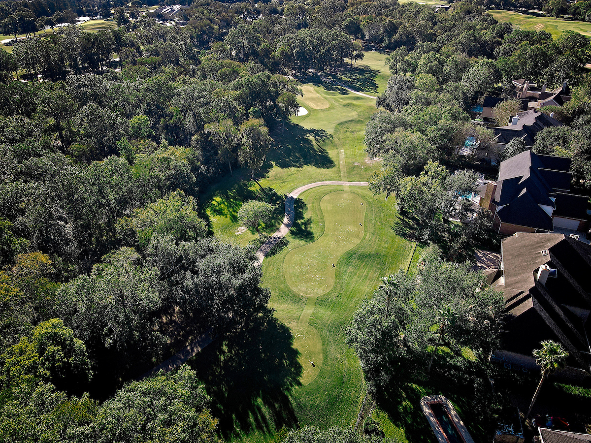 Mature oak trees and other hardwoods frame the par 3, 13th. The open wooded area has a charming park-like quality to this hole that provides an opportunity for a low score.