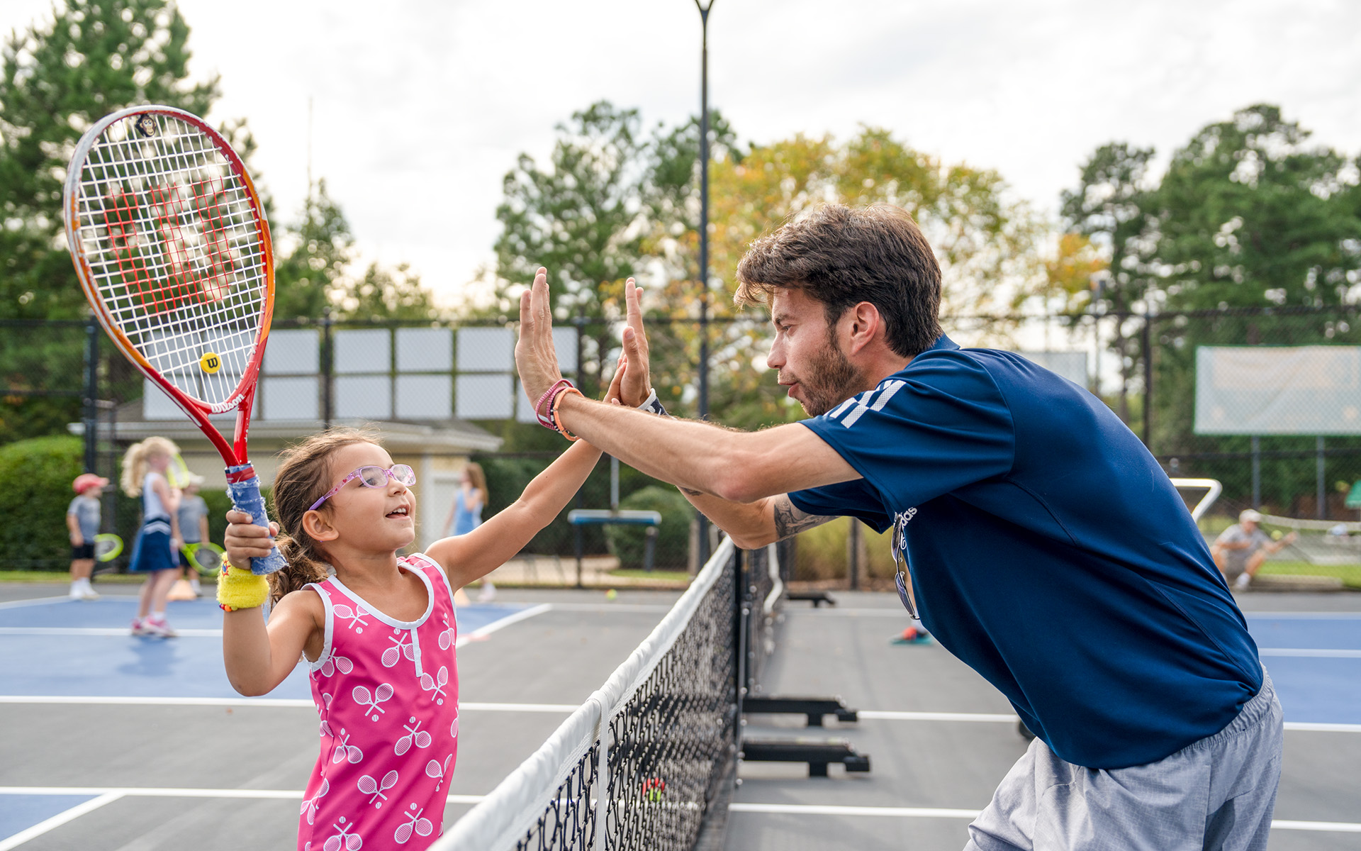 With four clay tennis courts, three hard tennis courts, and four pickleball courts to choose from, you'll love tennis at Brier Creek. Pick up a racquet at your leisure or get involved with any of our numerous leagues, clinics and camps. Take advantage of our instruction, available privately or to a group, or have your young players enjoy our junior program.