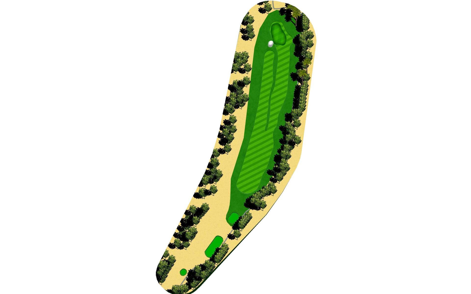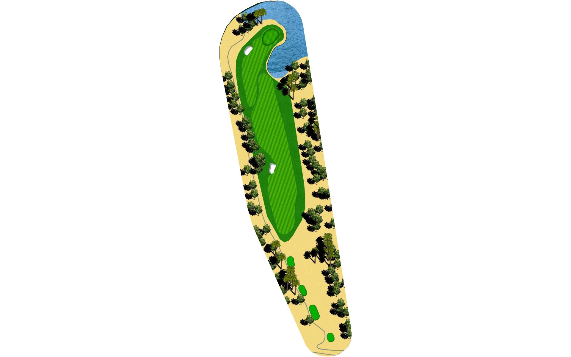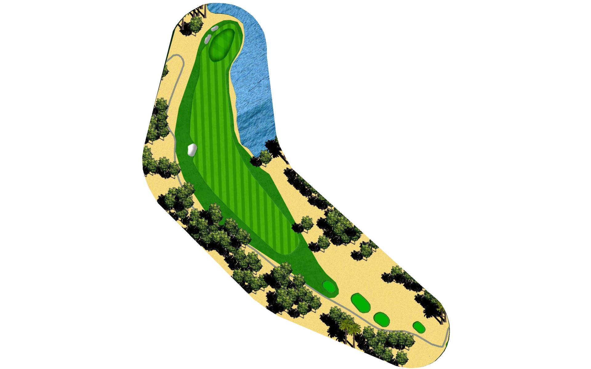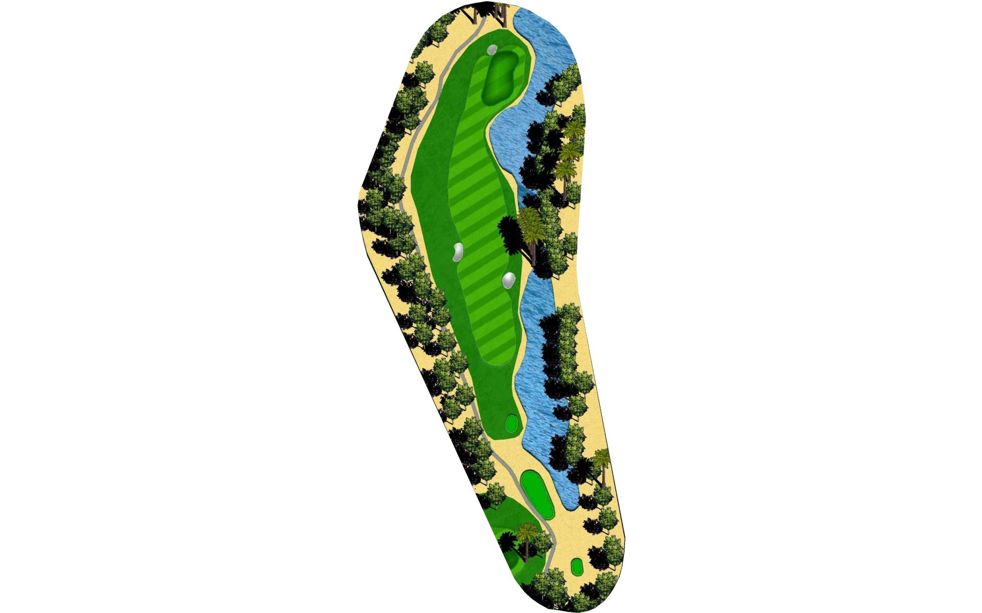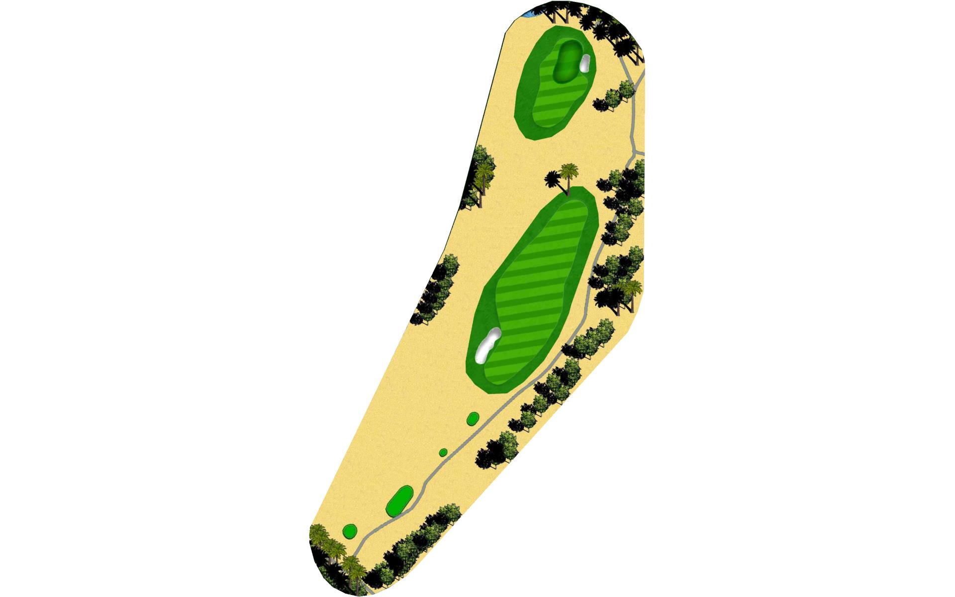 Short Par 4 that is straight away. Be careful as out of bounds runs along the entire left side of the hole and sneaks into play over the green. Fairway bunker on the right will give you approximately 160 yards into the green that is surrounded by bunkers short right and left, as well as long right. The green slopes back to front, and gets very narrow towards the back of the putting green. *Player Note: Middle of the green on approach shots to back pin placements is best.