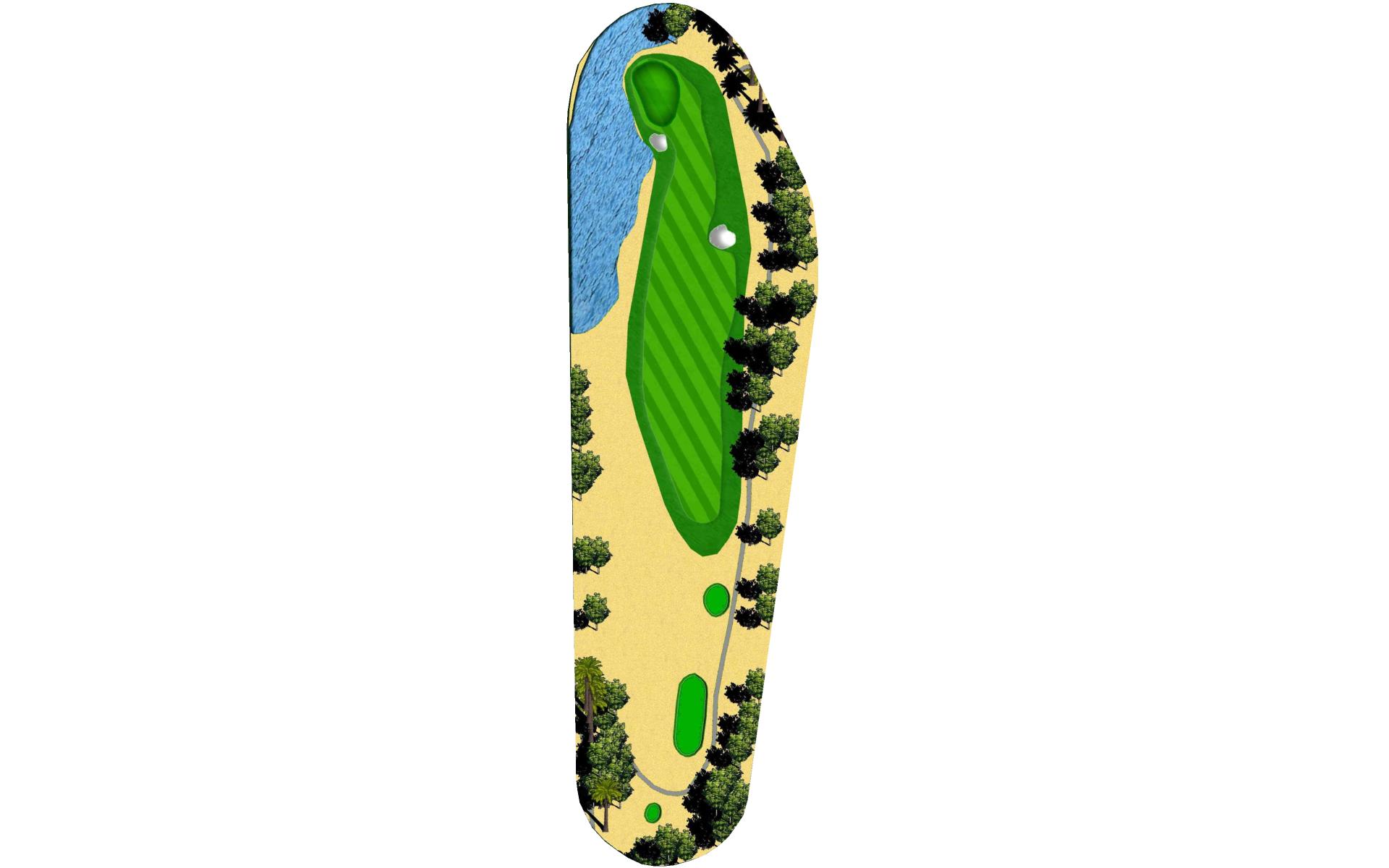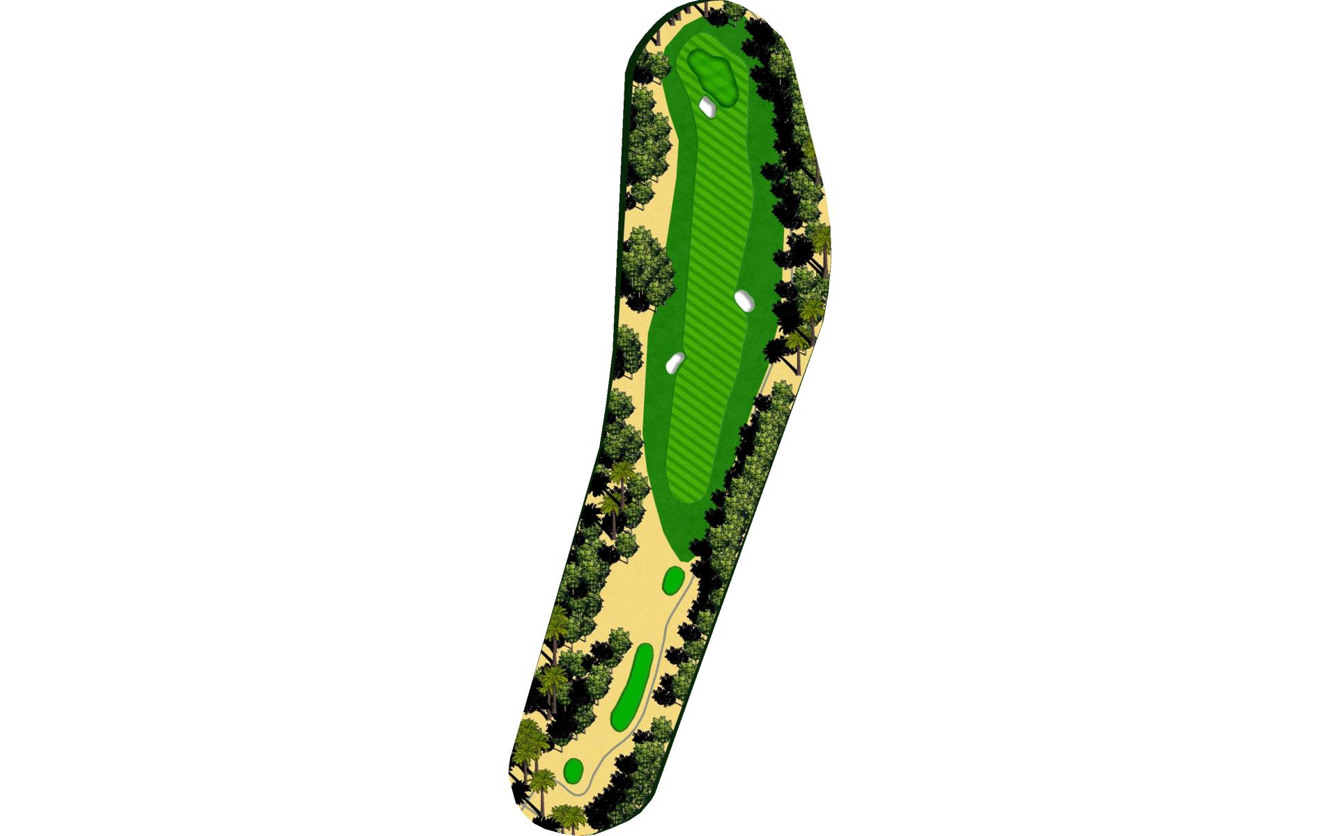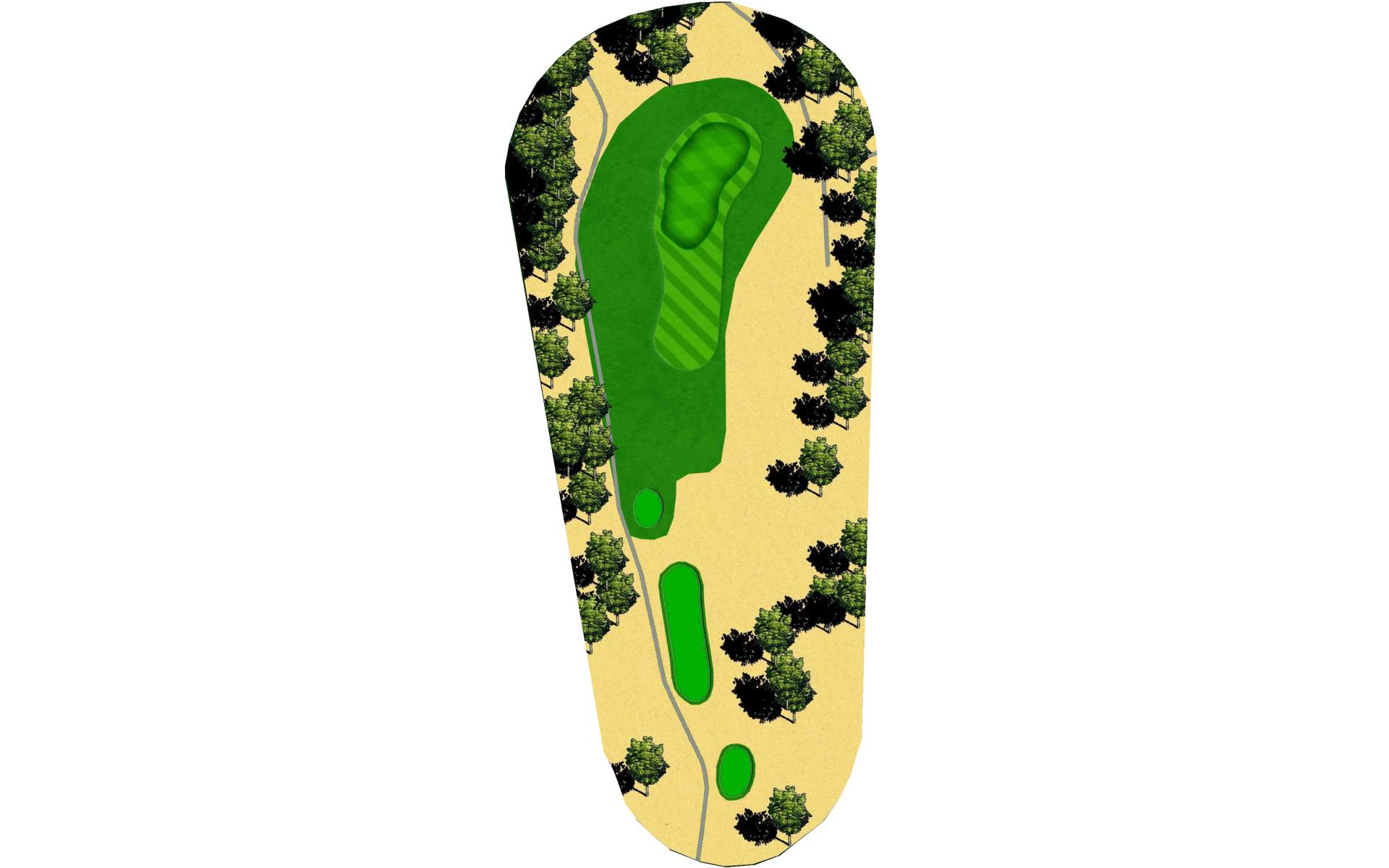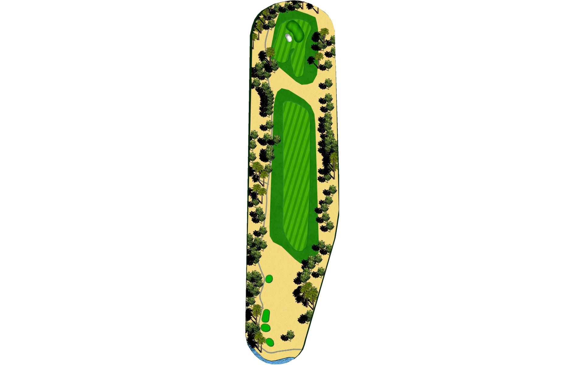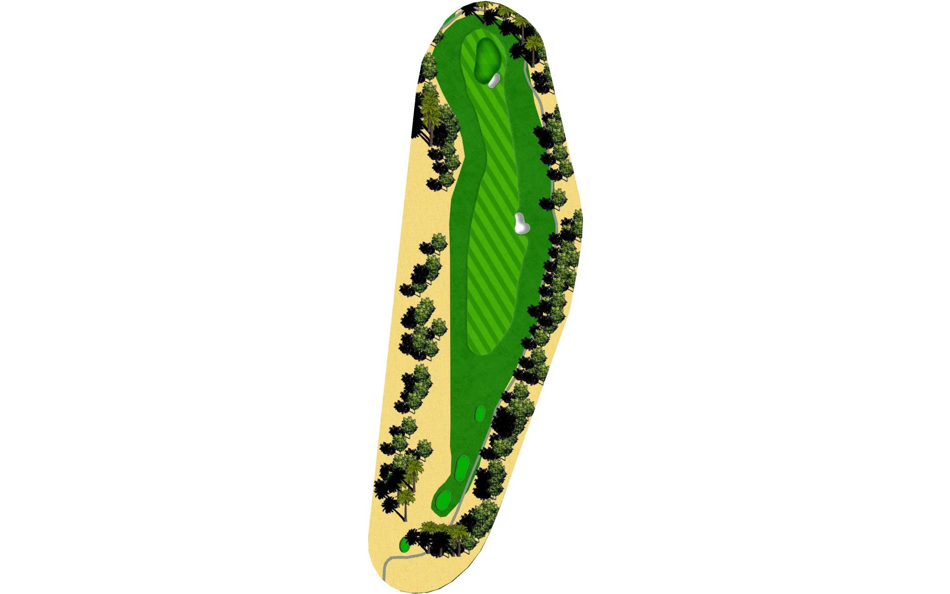 Short Par 4 that is straight away. Be careful as out of bounds runs along the entire left side of the hole and sneaks into play over the green. Fairway bunker on the right will give you approximately 160 yards into the green that is surrounded by bunkers short right and left, as well as long right. The green slopes back to front, and gets very narrow towards the back of the putting green. *Player Note: Middle of the green on approach shots to back pin placements is best.