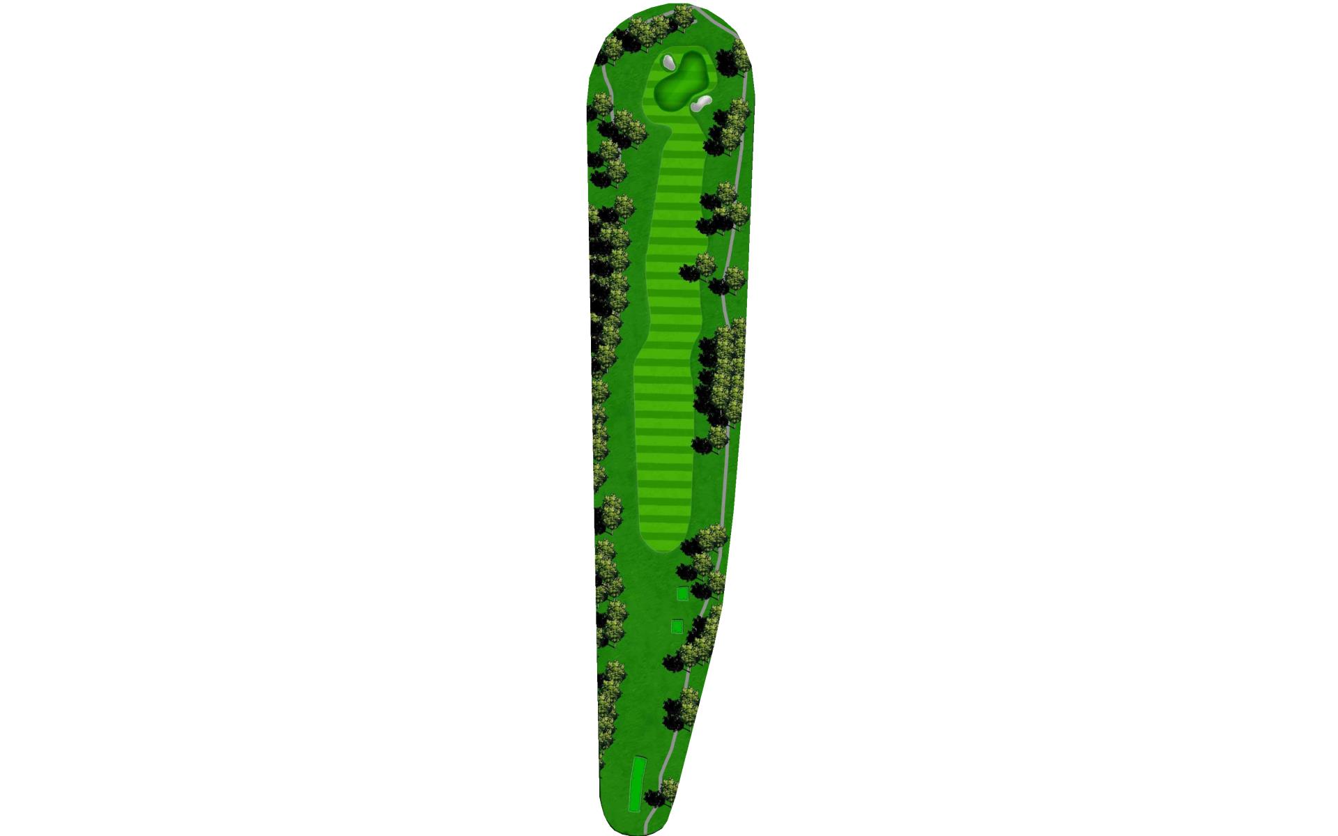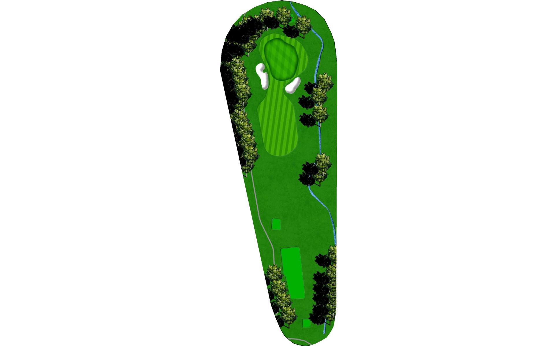 One of the most difficult par 4s on the course; your tee shot is critical to making par. A slight draw with a driver or well placed layup will avoid the dangers of the tree lined fairway.