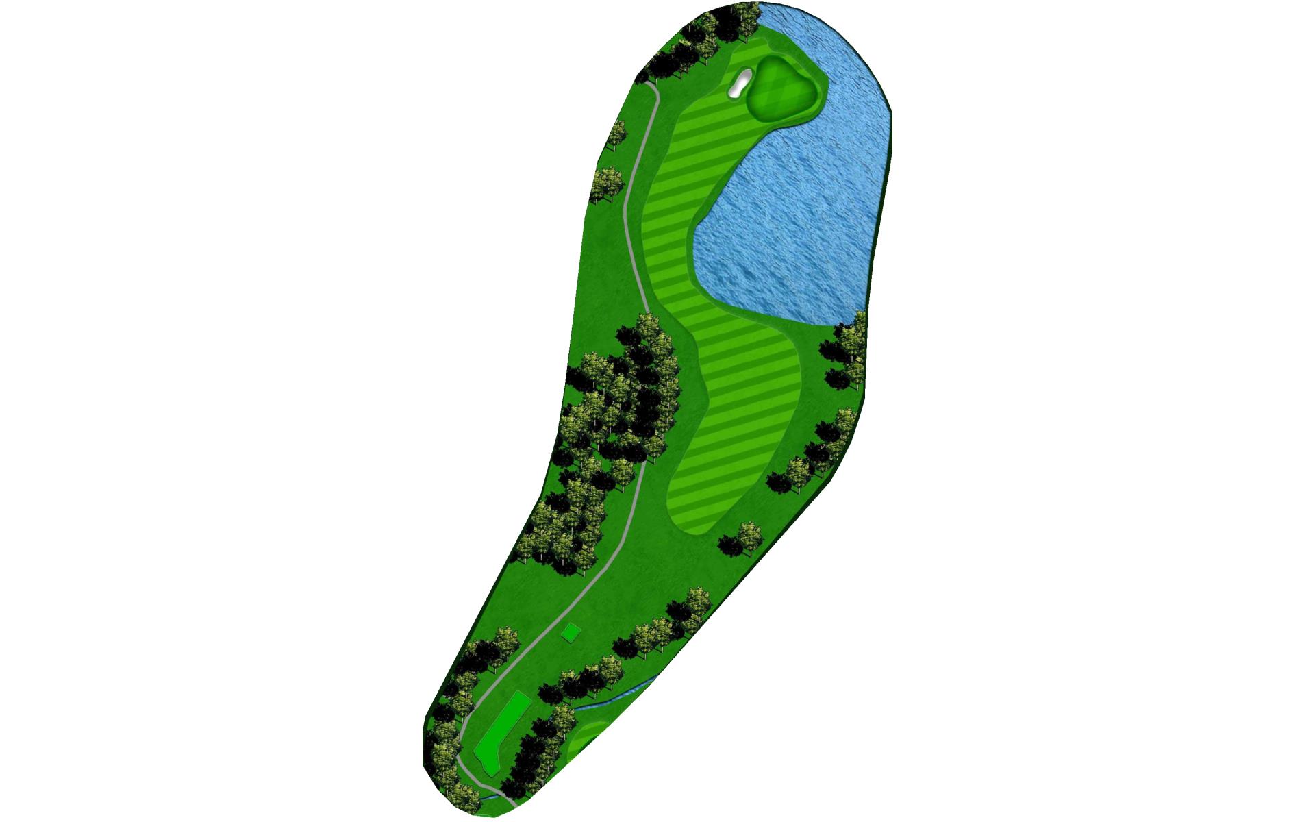 A signature par 5 and a great way to finish the round. Make sure to play to the left side of the fairway for a right kick. Long hitters can challenge the green that looks to drip into the lake on the right side. A great third would be 120 yards out to a narrow green with multiple pin locations that can challenge even the best wedge player in the game.