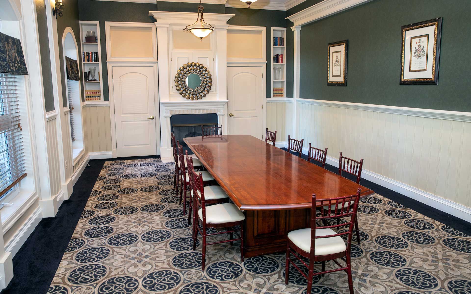 The Library can accommodate up to 30 for a sit-down meeting or reception. The Library has a built-in screen to be used with our projector system. Groups over 30 may be accommodated in this space for cocktail-style receptions.