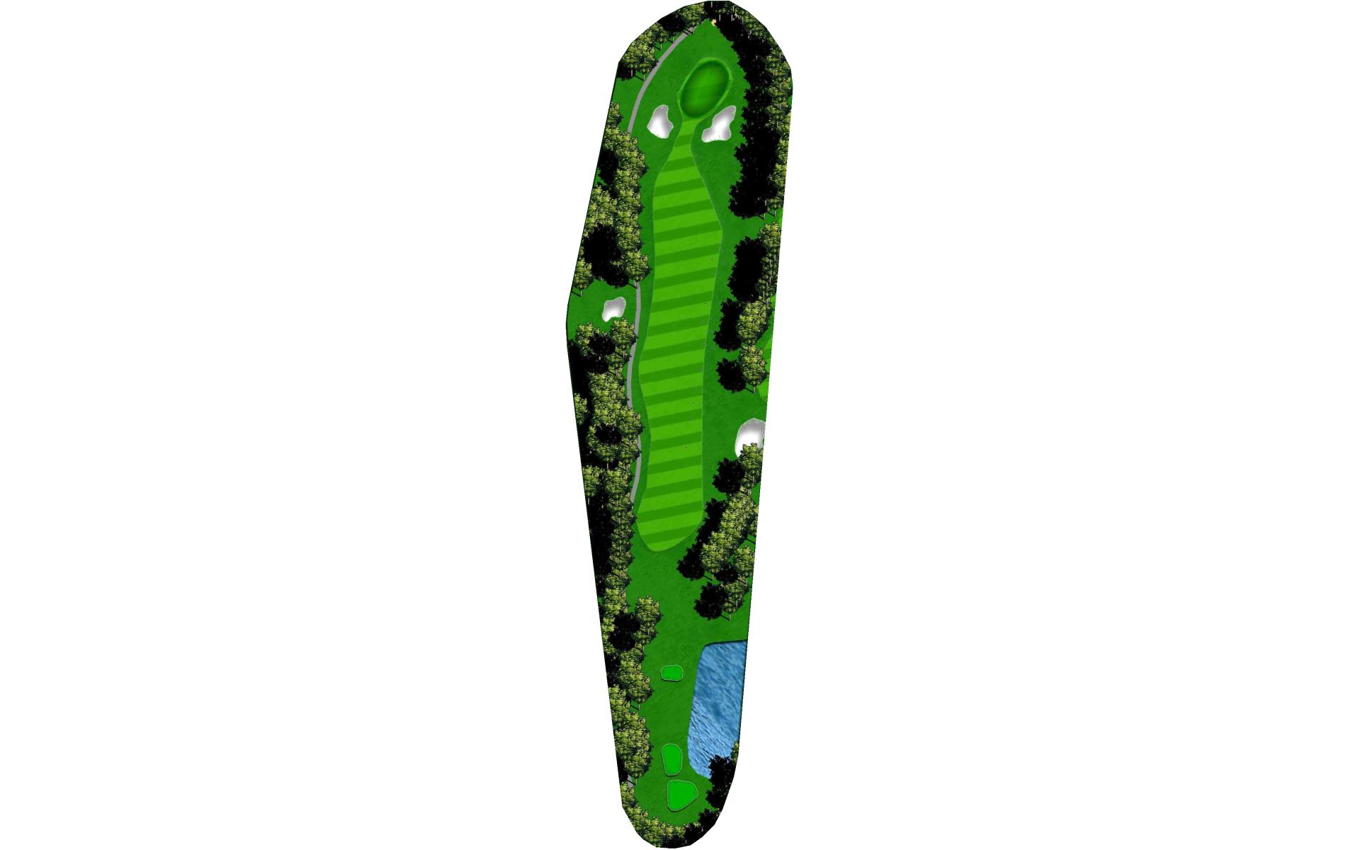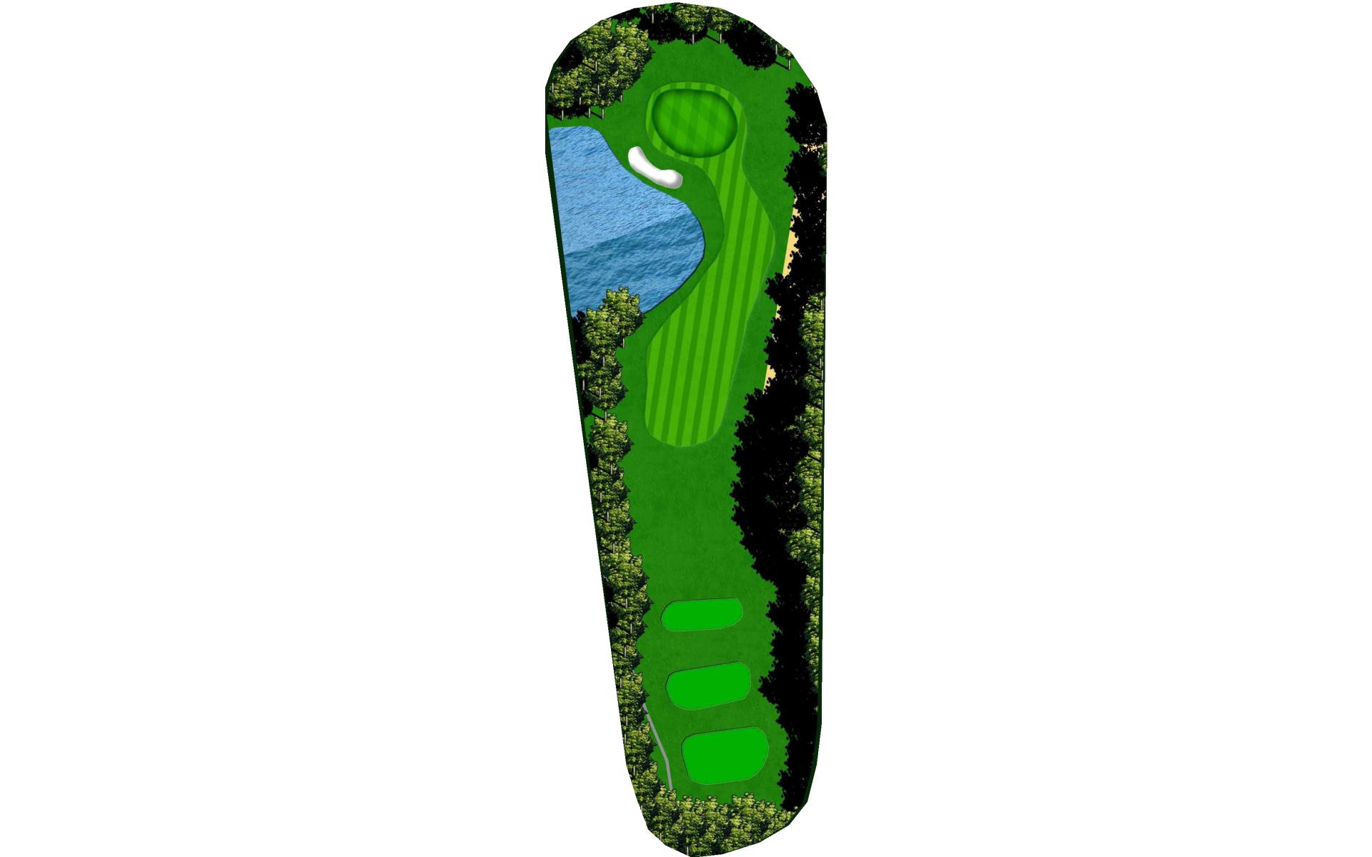 This long par 3 features water and a bunker in front of the green. Players need to make sure they take enough club to land safely on the putting surface.