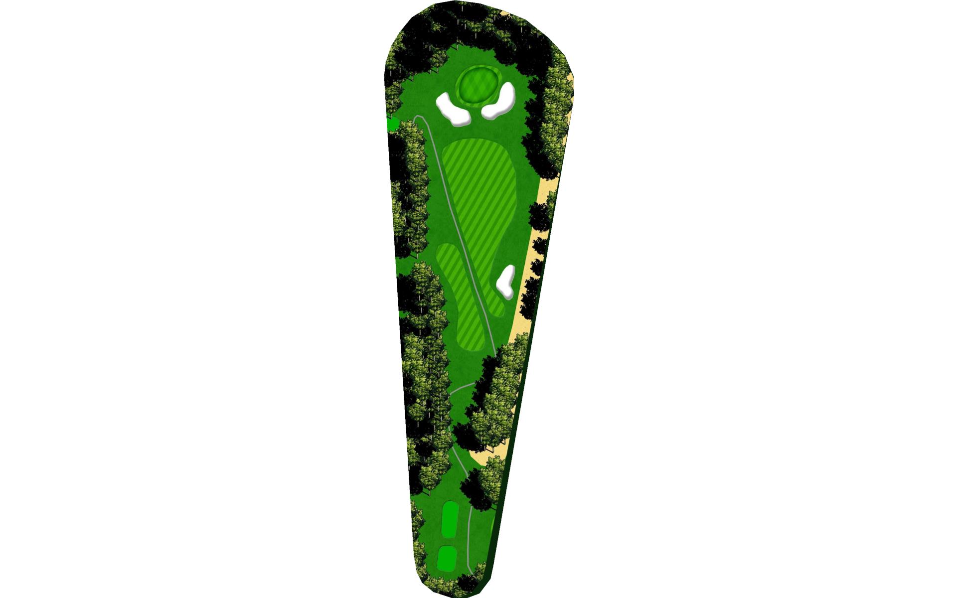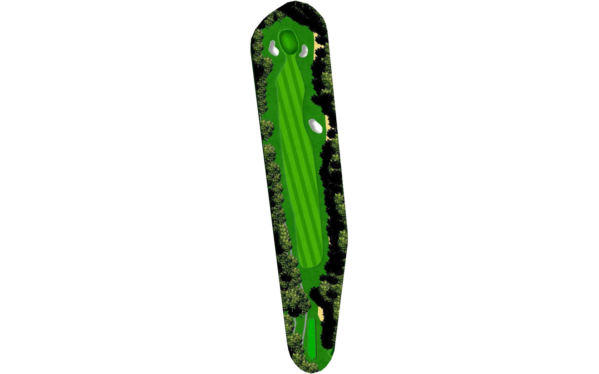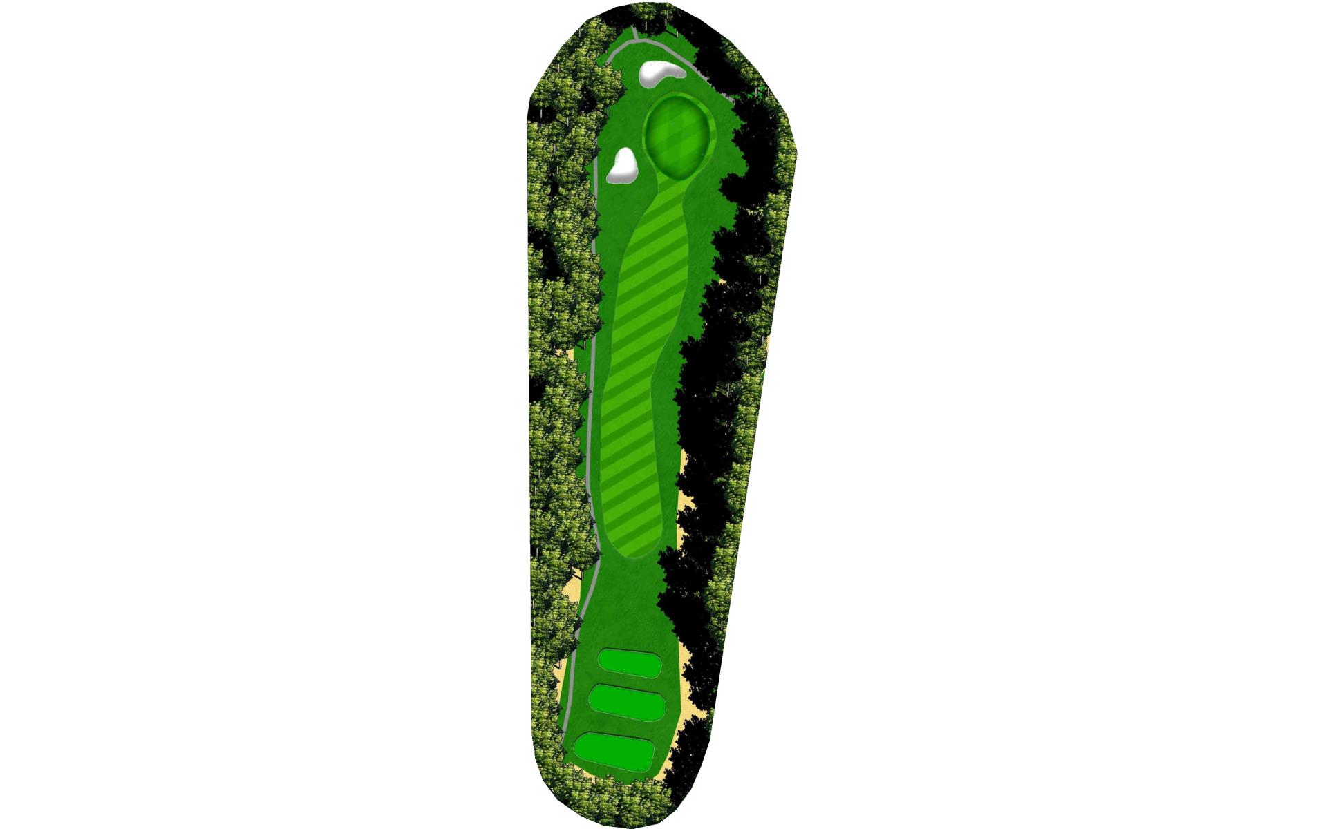 The second is a dogleg right par 4 with out-of-bounds on the left. Golfers will need to keep their tee shot down the middle in order to set up an approach into this wide green.