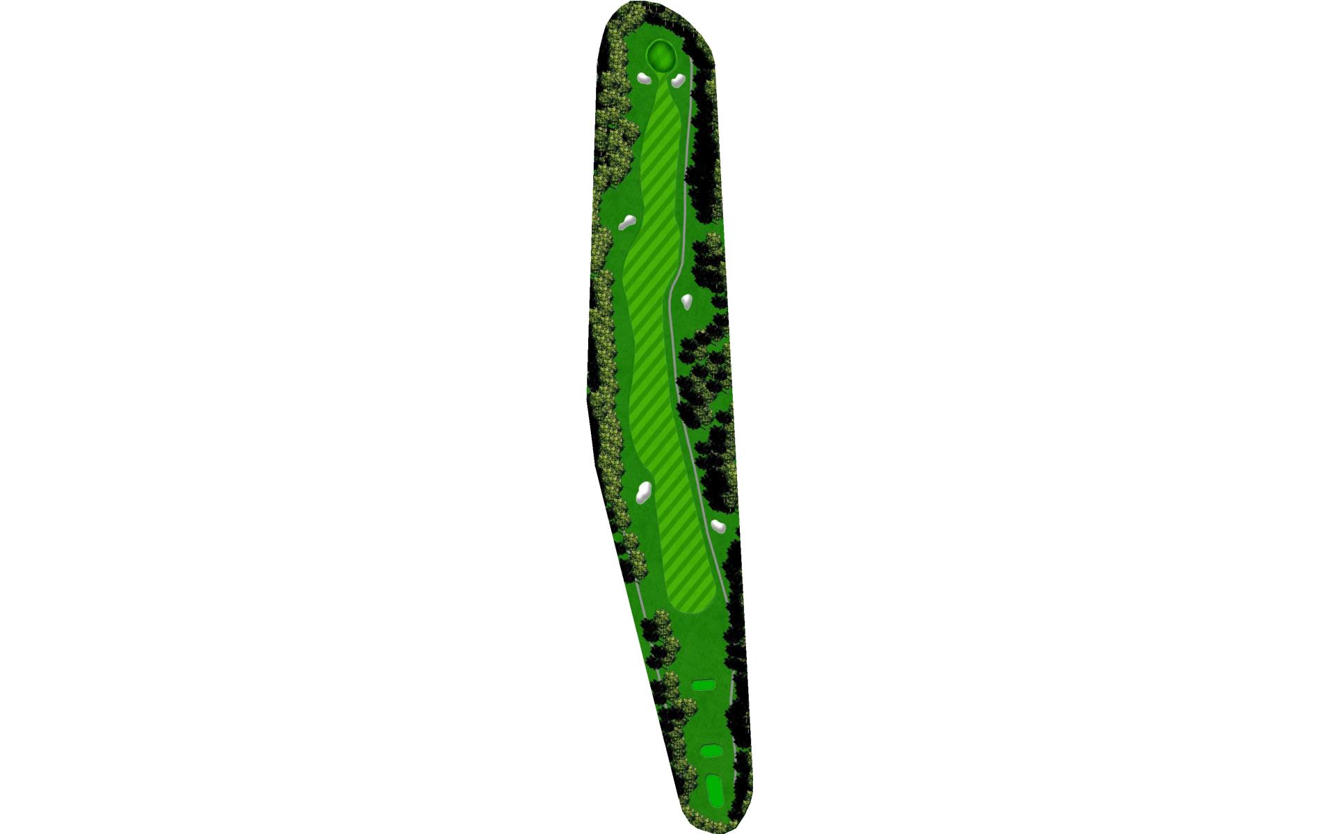The sixth is a classic risk-reward par 4. It’s narrow and downhill, so golfers can either bomb a driver up near the green or play it safe with less club off the tee. Out-of-bounds left and right will penalize any wayward shots.