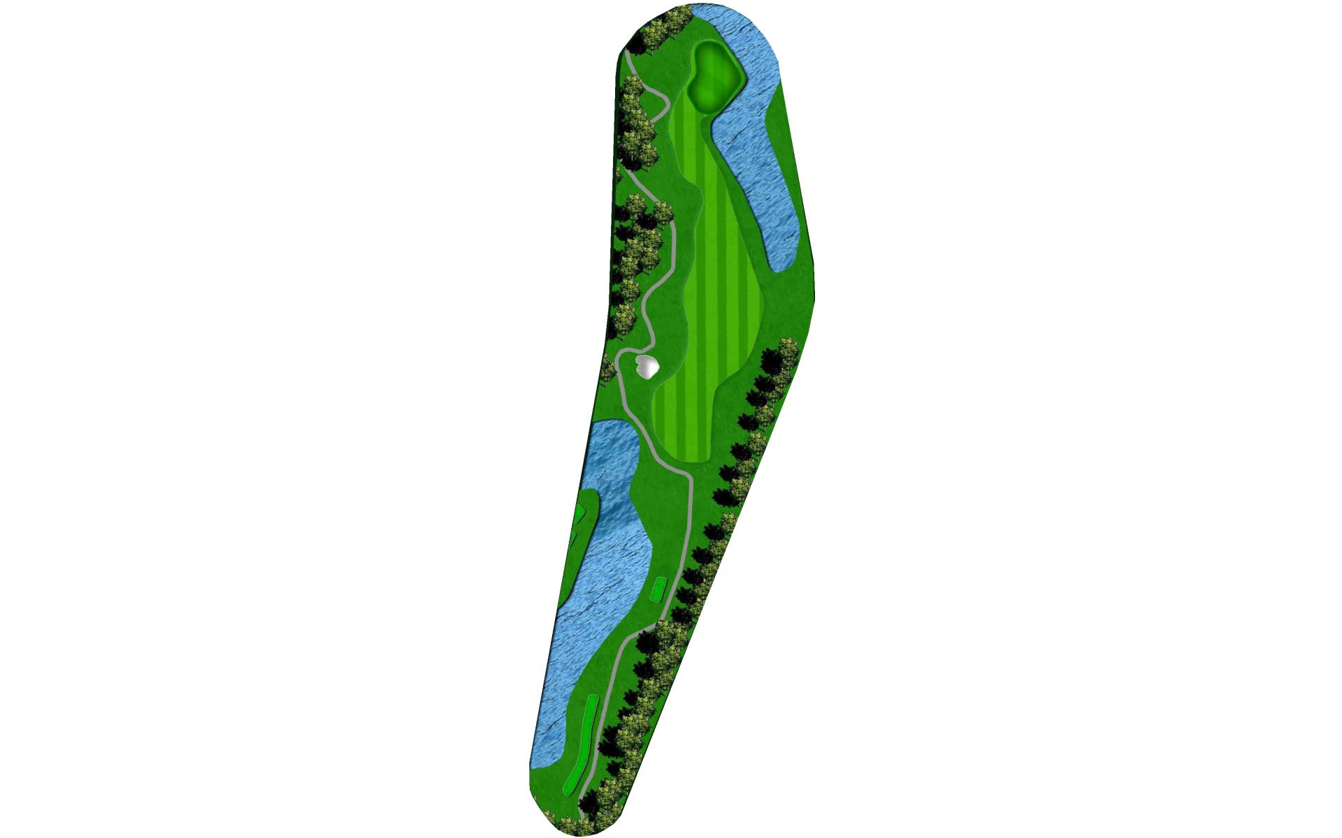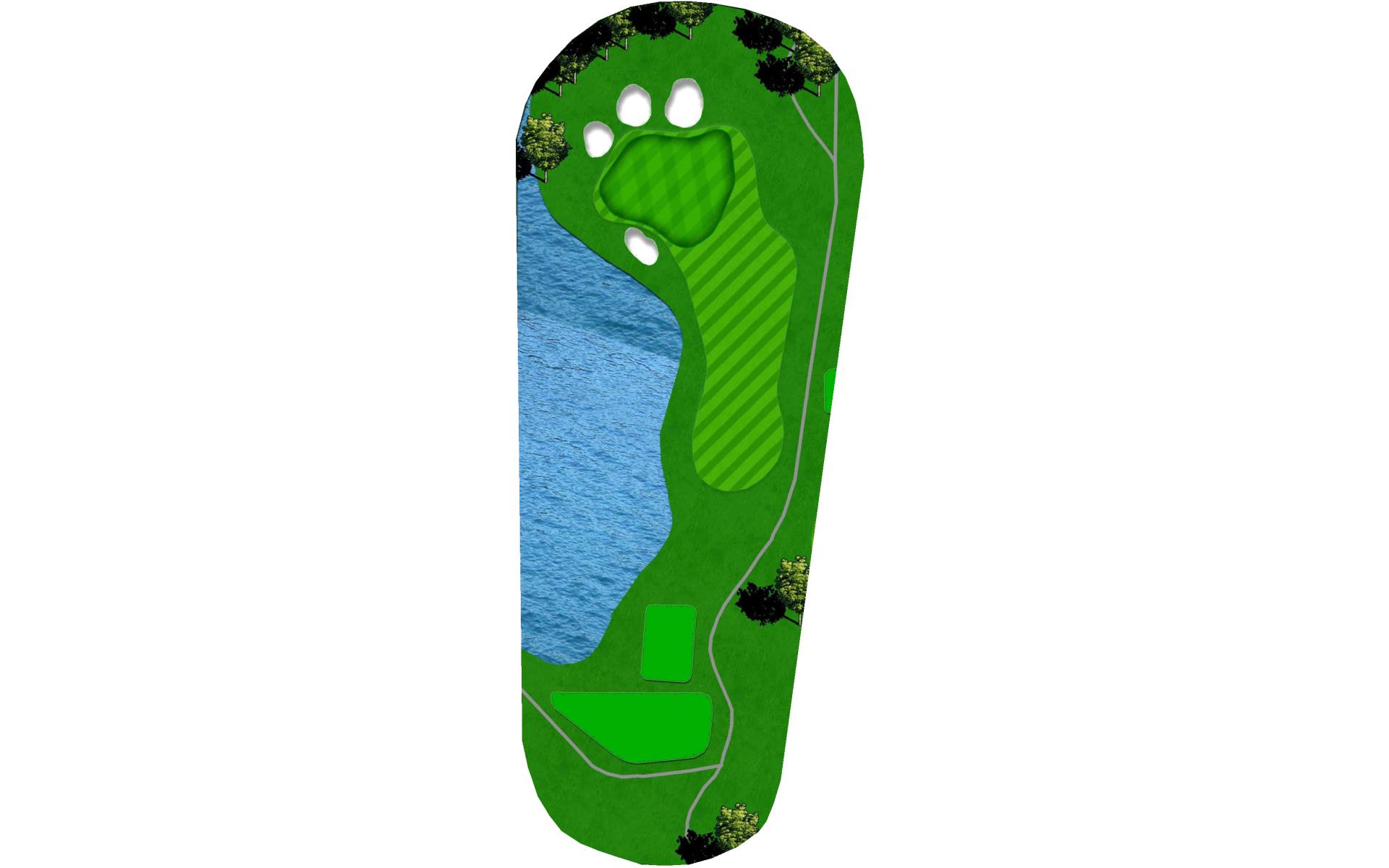 "Bagpipes" is a long par 4 that sets up for a challenging finish. A good drive leaves a long approach into yet another peninsula green. Extreme undulation in the middle parts of the green make placement on the second shot paramount to success with the putter.